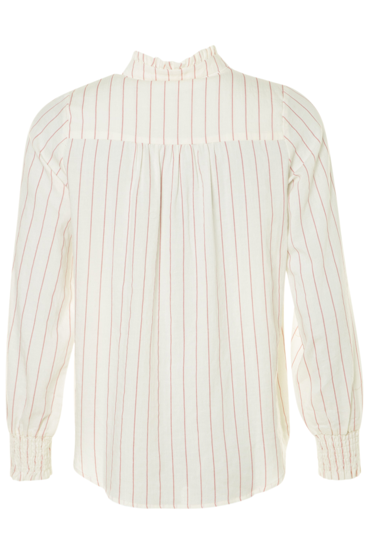 En fin randig blus från Soulmate med smal ståkrage och volang. Blusen är rak i modellen och vid i passformen och knäpps med sex dekorativa knappar fram. Blusen har ärm med smock-resår i ärmsluten och är... Läs mer...