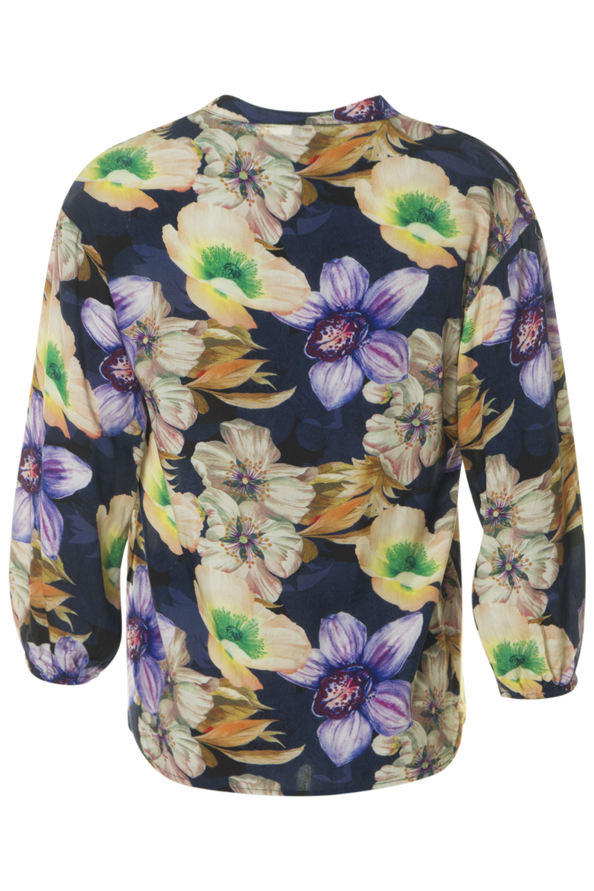 Blusen har 3/4-ärm, resår i ärmsluten och är tillverkad av en sval, mjuk viskos.