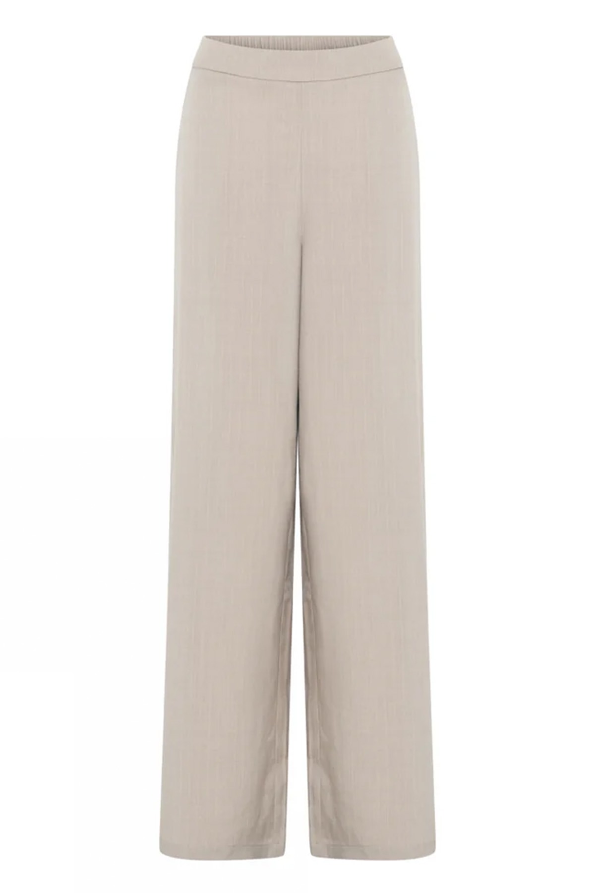 Ge din stil en modern siluett med Soulmate Pam, ett par fantastiskt bekväma byxor som kombinerar en skräddarsydd look med en avslappnad känsla. Byxorna har en vacker ljusbeige nyans med klassiska kritsträcksränder som ger en förlängande effekt och en sofistikerad touch.