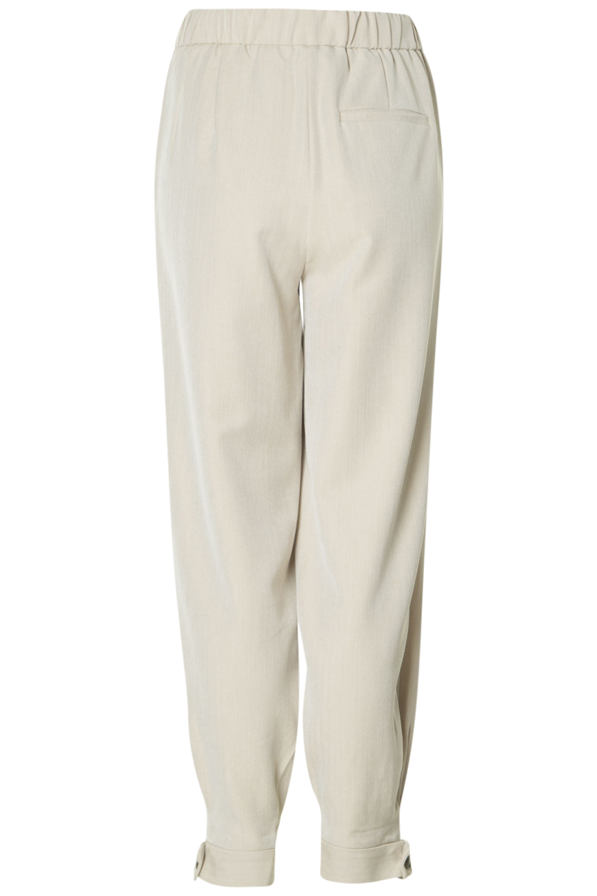 En snygg byxa med elastisk linning baktill och knapp och dragkedja fram från Soulmate. Ett par vida byxor med en mudd nedtill med en knapp och knapphål. Byxan har två insydda fickor i sidsömmar och är tillverkad av en mixkvalitet. De passar perfekt tillsammans med kavaj Smash också från Soulmate.