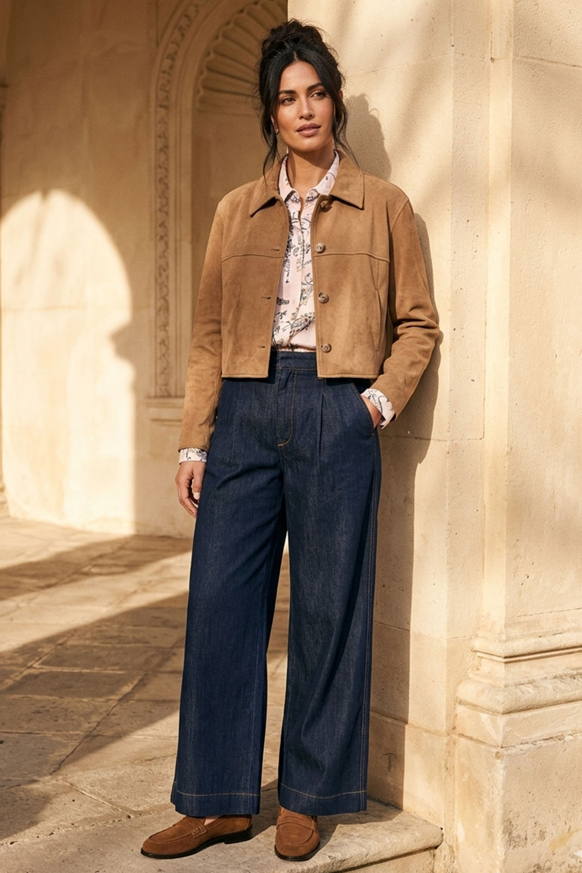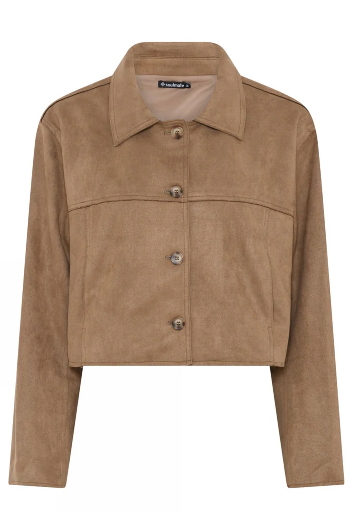 Bonnier1 från Soulmate är en stilren kort jacka med ett klassiskt snitt som förenar en mockaliknande textur med ett elegant uttryck. Jackan kommer i en tidlös sandfärg, vilket gör den till ett mångsidigt plagg som är lätt att kombinera. Tack vare sin lätta kvalitet fungerar den utmärkt som en snygg övergångsjacka.