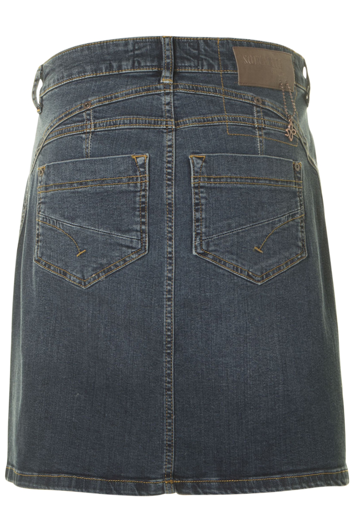 En klassisk lite kortare jeanskjol från Soulmate. Kjolen har knapp och dragkedja fram och den har typiska jeansfickor framtill och utanpåfickor bak. Kjolen har en feminin skärning baktill för att följa svank och stuss på ett fint sätt. Den är tillverkad i stretchig denim med sydda sömmar.