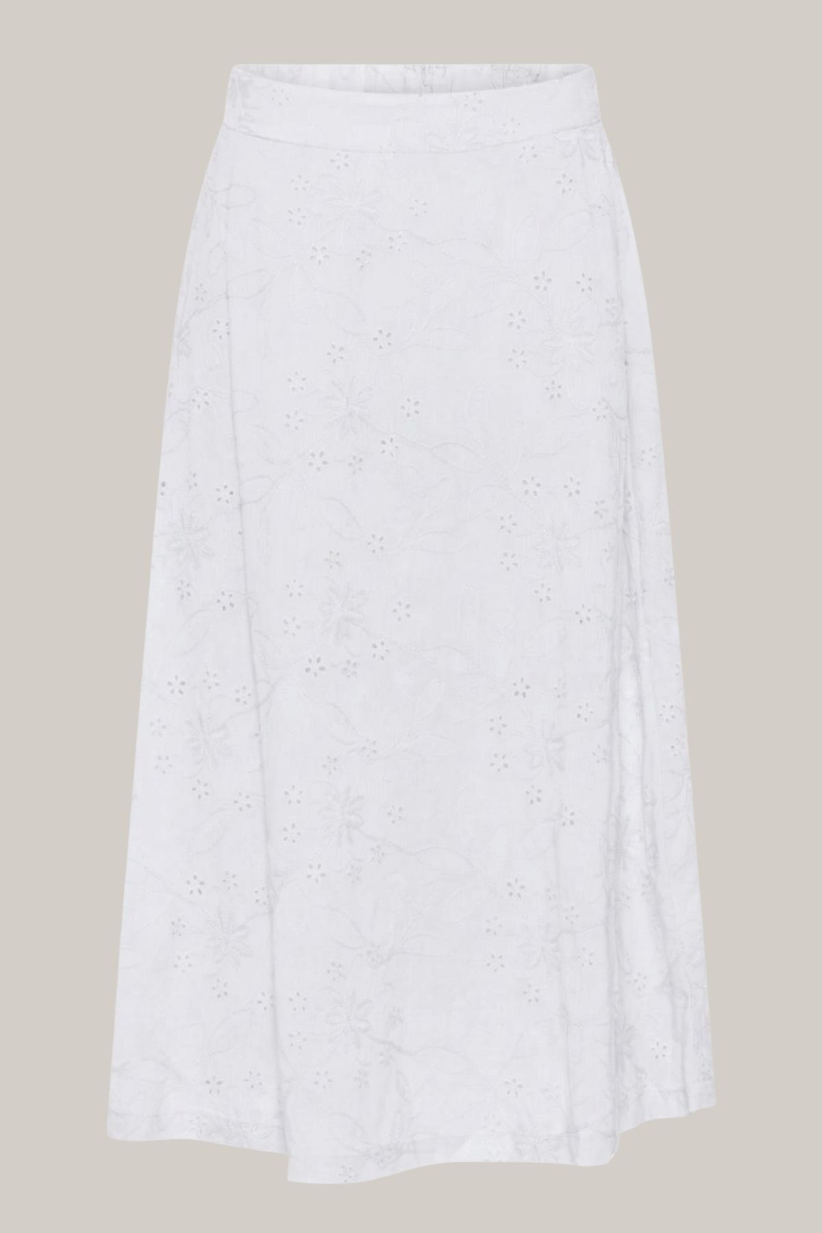 Upplev den feminina charmen hos Soulmate Kimira2, en vacker kjol tillverkad i 100% förstklassig bomull. Denna modell kombinerar ett romantiskt uttryck med funktionella detaljer, vilket gör den till ett självklart val för säsongens alla tillfällen. Kjolen pryds av ett delikat och genomgående hålbroderi som ger plagget en luftig och exklusiv känsla.