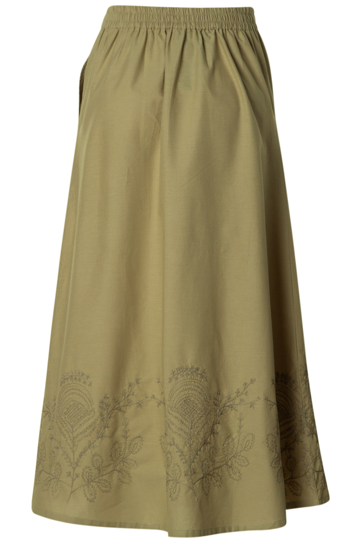 Soulmate Kjol Monalisa, en vacker kjol med härligt broderat mönster i nederkanten. Kjolen är A-formad med resår i midjan bak, samt två sidfickor.