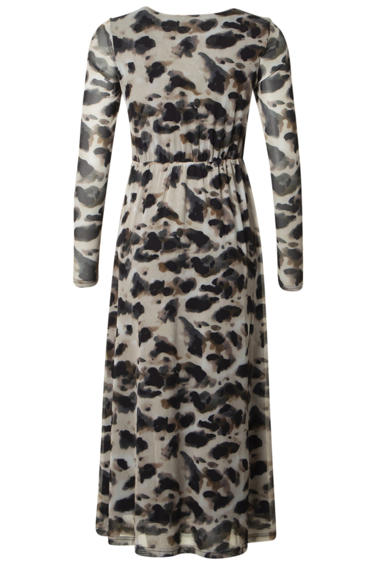 Soulmate Klänning Belly2, en vacker V-ringad genombruten stretch-klänning från Soulmate med foder (ej fodrad i ärmar). Klänningen har ett dekorativt rynkat parti mitt fram.