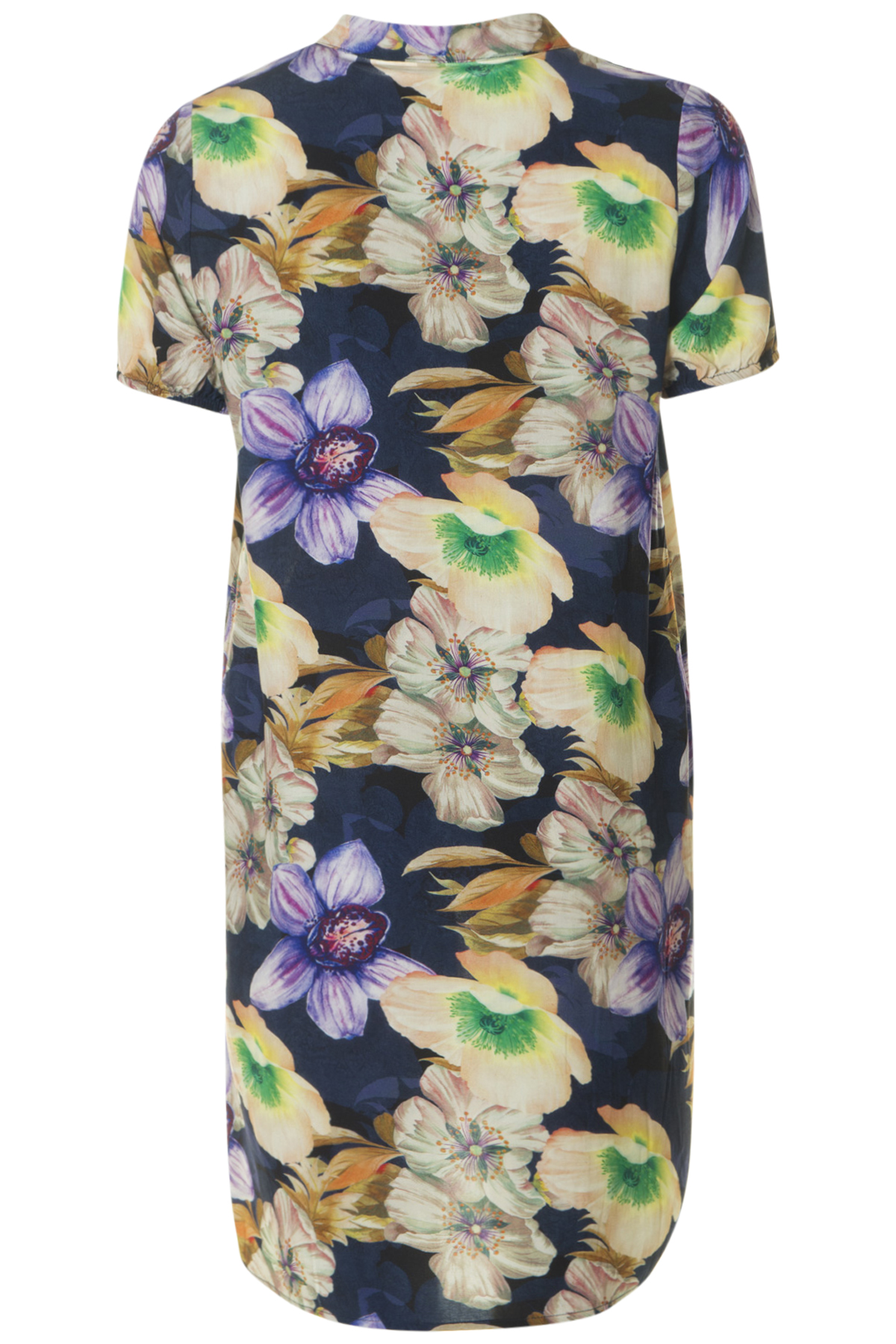 En härlig färgsprakande V-ringad klänning från Soulmate. Klänningen har korta ärmar med resår i ärmavsluten och ståkrage. Klänningen är rak och rymlig och har fickor i sidor.