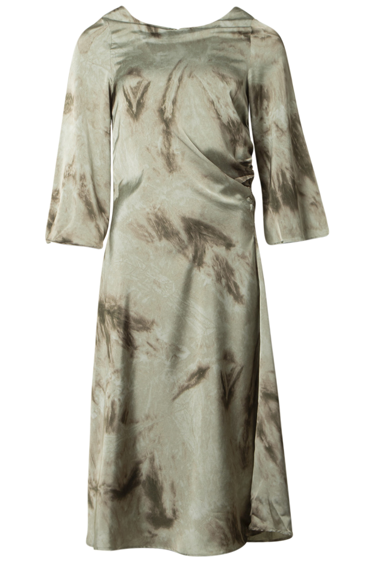 Soulmate Klänning Silvianna, en vacker klänning med 3/4-ärm och rund hals från Soulmate. Klänningen har ett dekorativt rynkat parti i ena sidan och en dragkedja i den andra. Den har ett sprund bak med en knapp och är tillverkad av en sval sidenmjuk viskosmix-kvalitet.