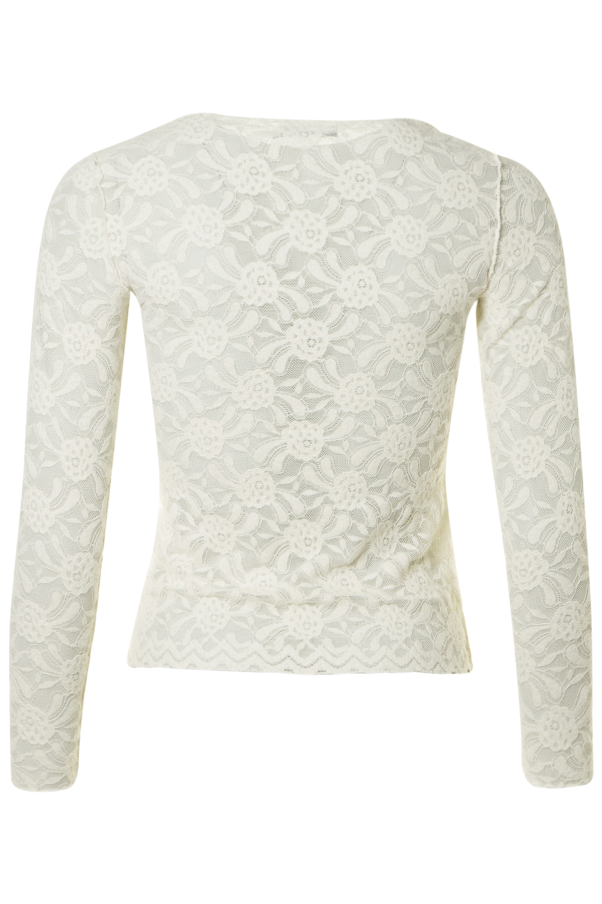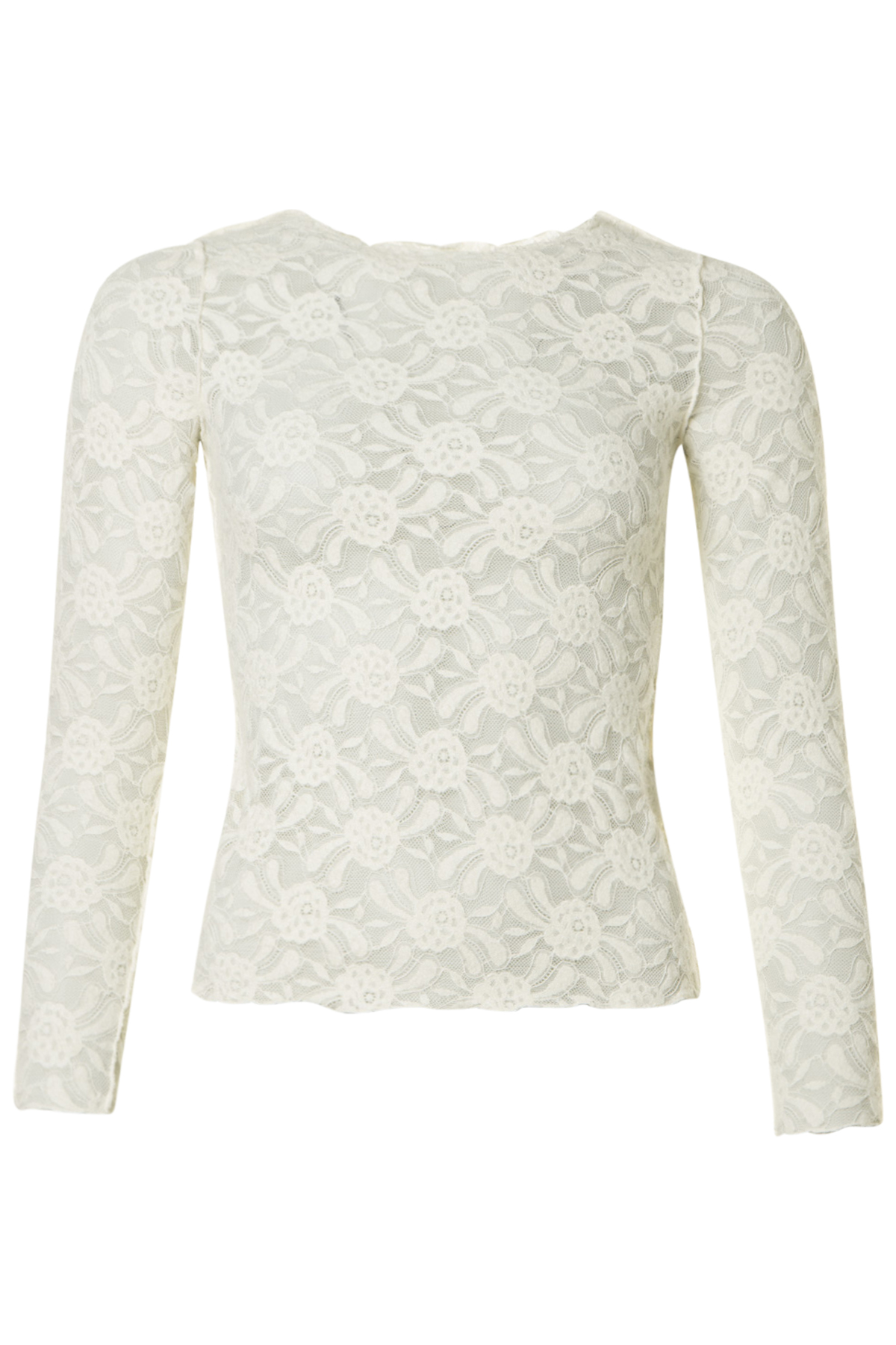 En fin topp i genombruten stretchig spets från Soulmate. Toppen har rund halsringning och lång ärm. Den är figurnära och normal i passformen.