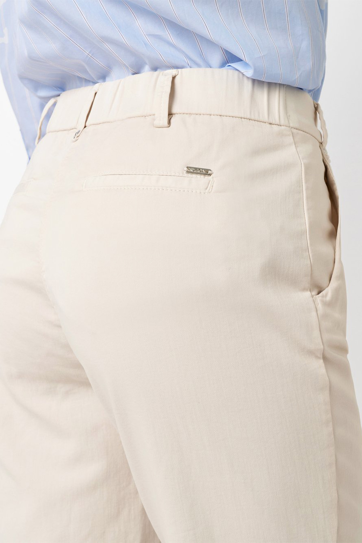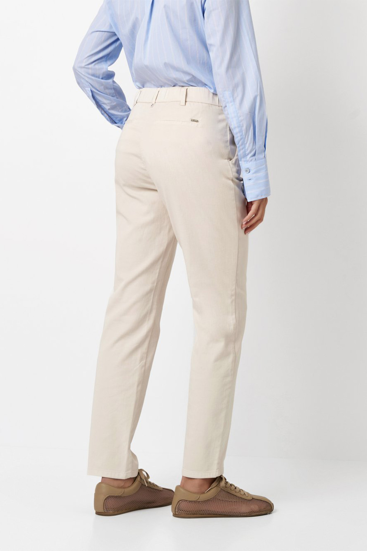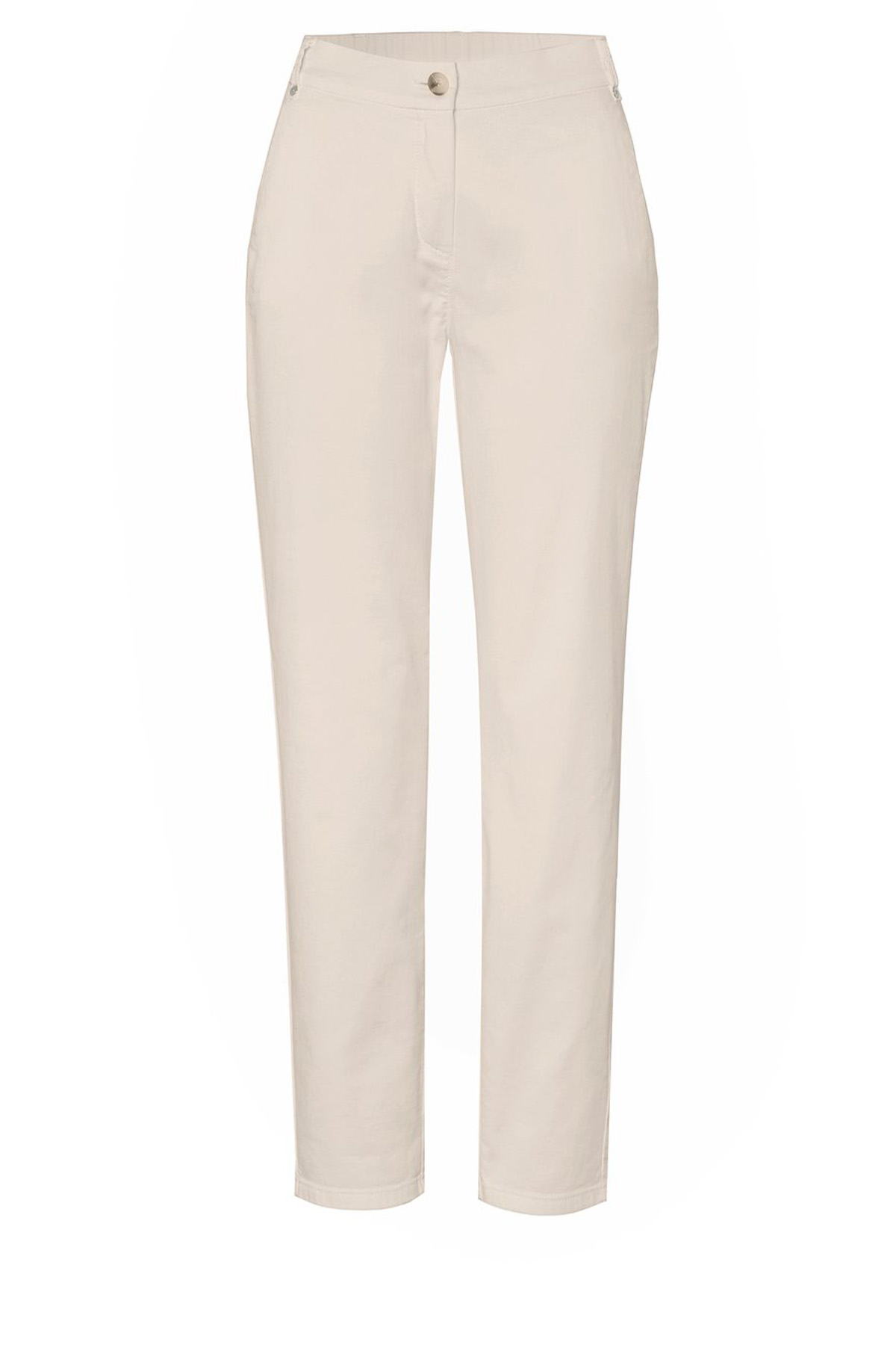 Sue Chino är en klassisk chinobyxa som ger en smal siluett utan att sitta tight. Byxorna knäpps med knapp och blixtlås fram och har två snedställda fickor framtill och två fuskfickor baktill. De är tillverkade av en sval bomulls blandning med god formstabilitet.