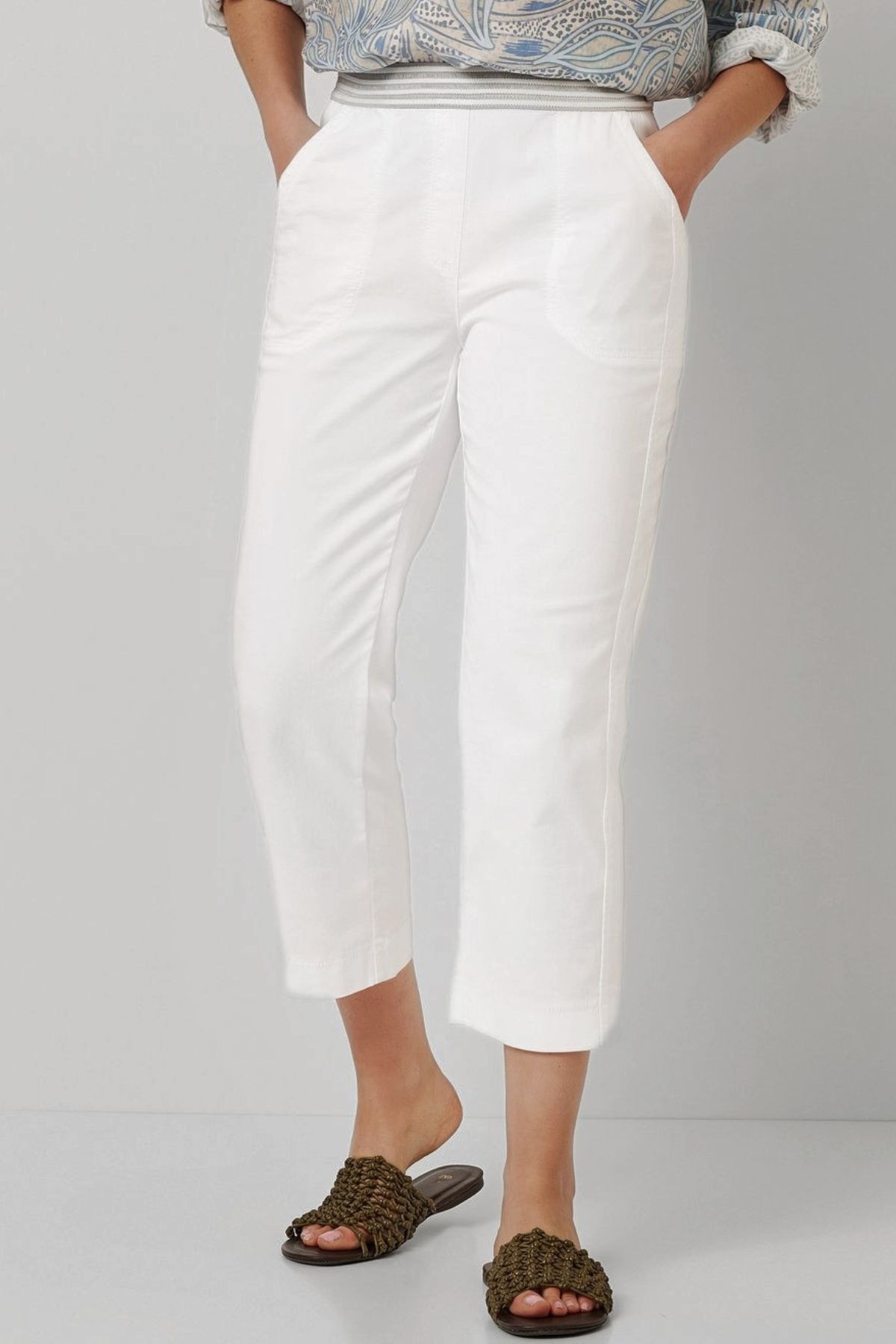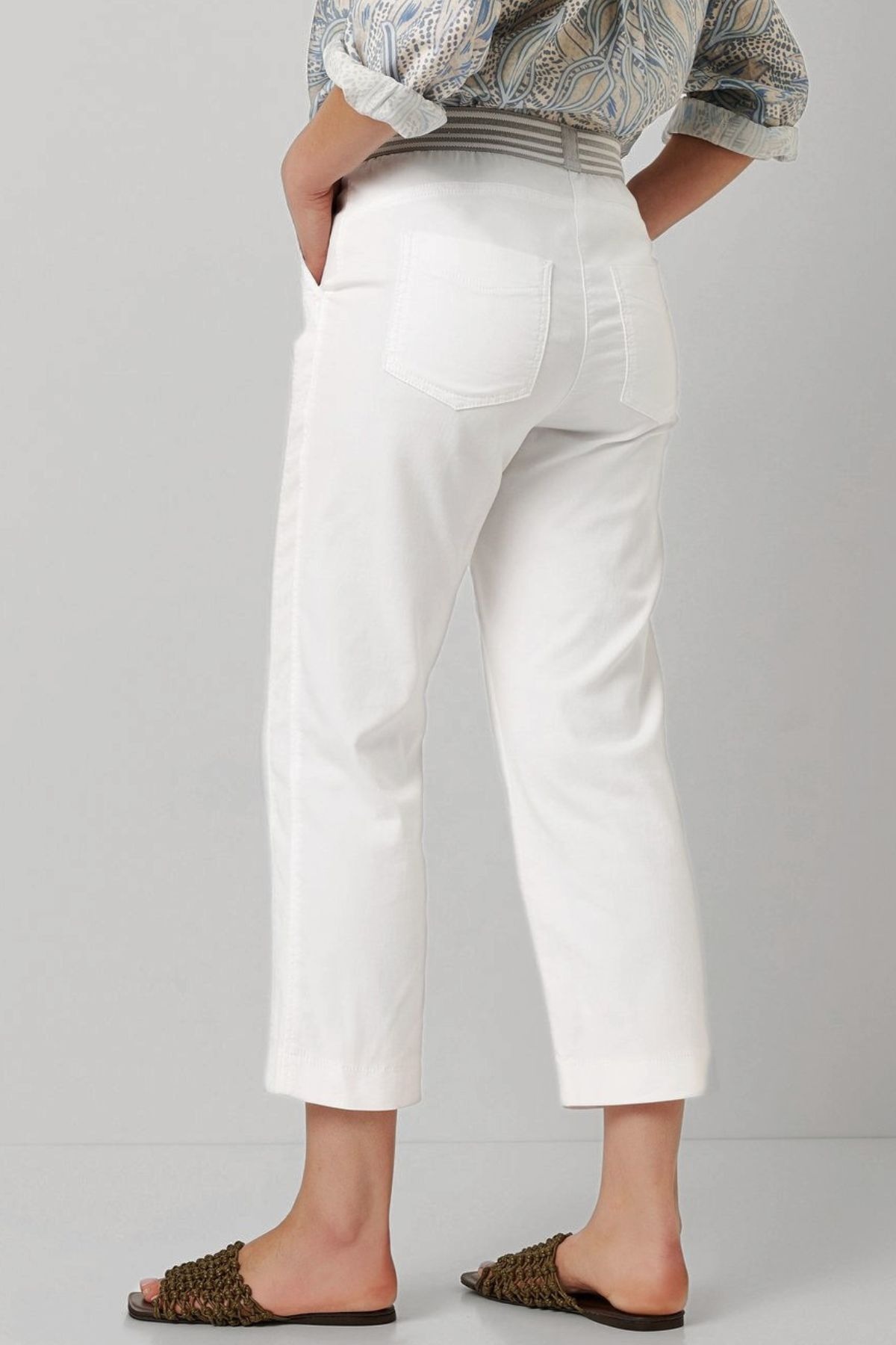 Den förkortade 3/4-längden gör byxan mycket mångsidig. Den är idealisk för somriga kombinationer där kravet på både stil och enkelhet står i fokus.