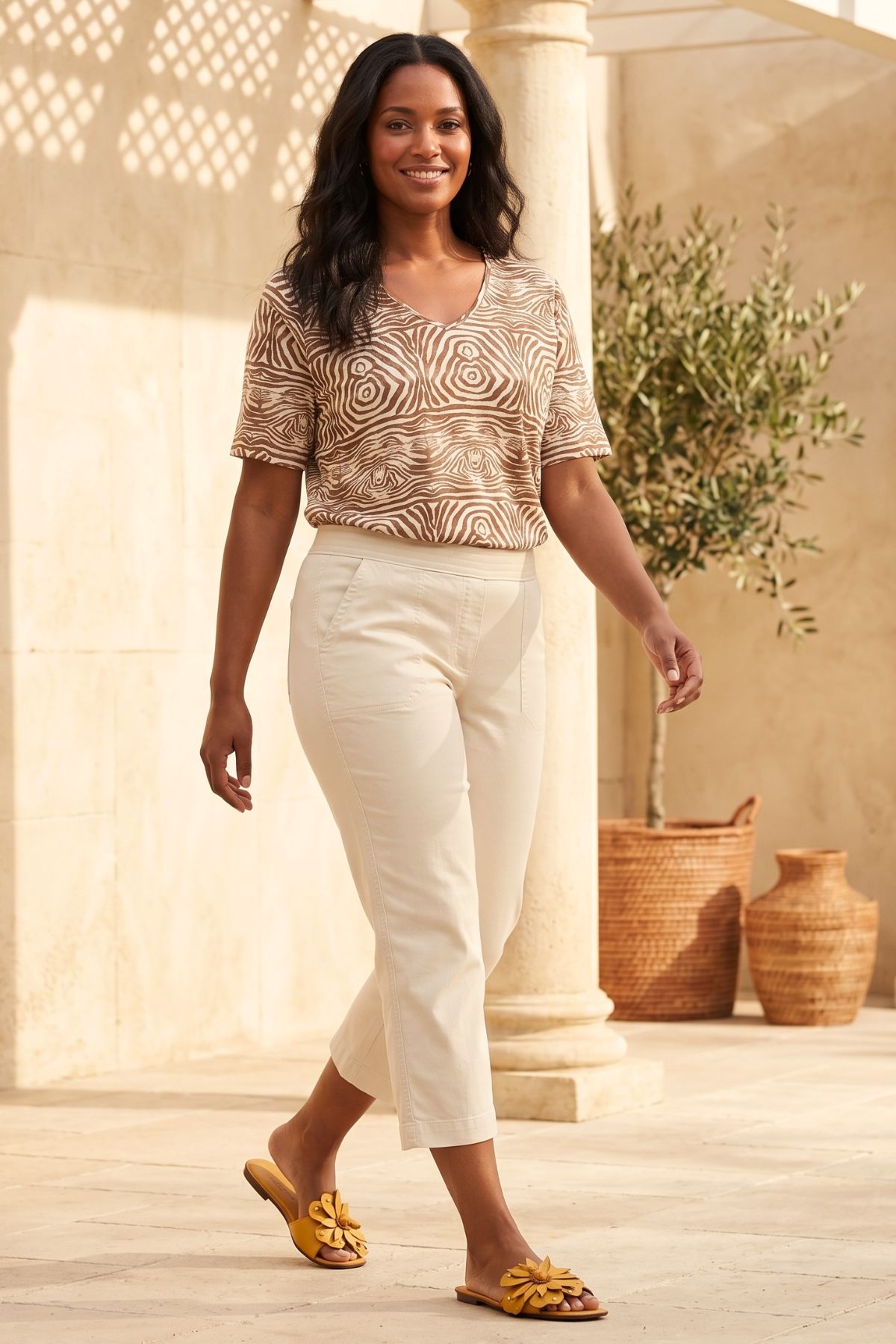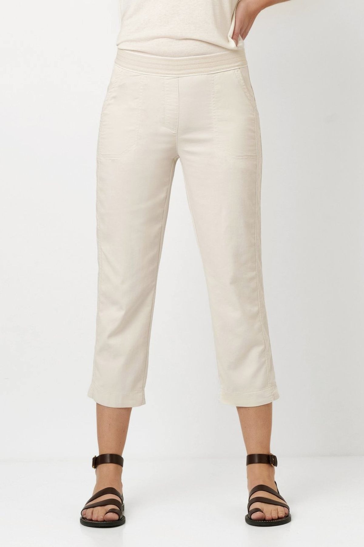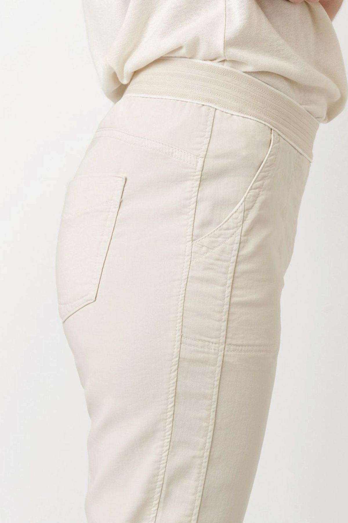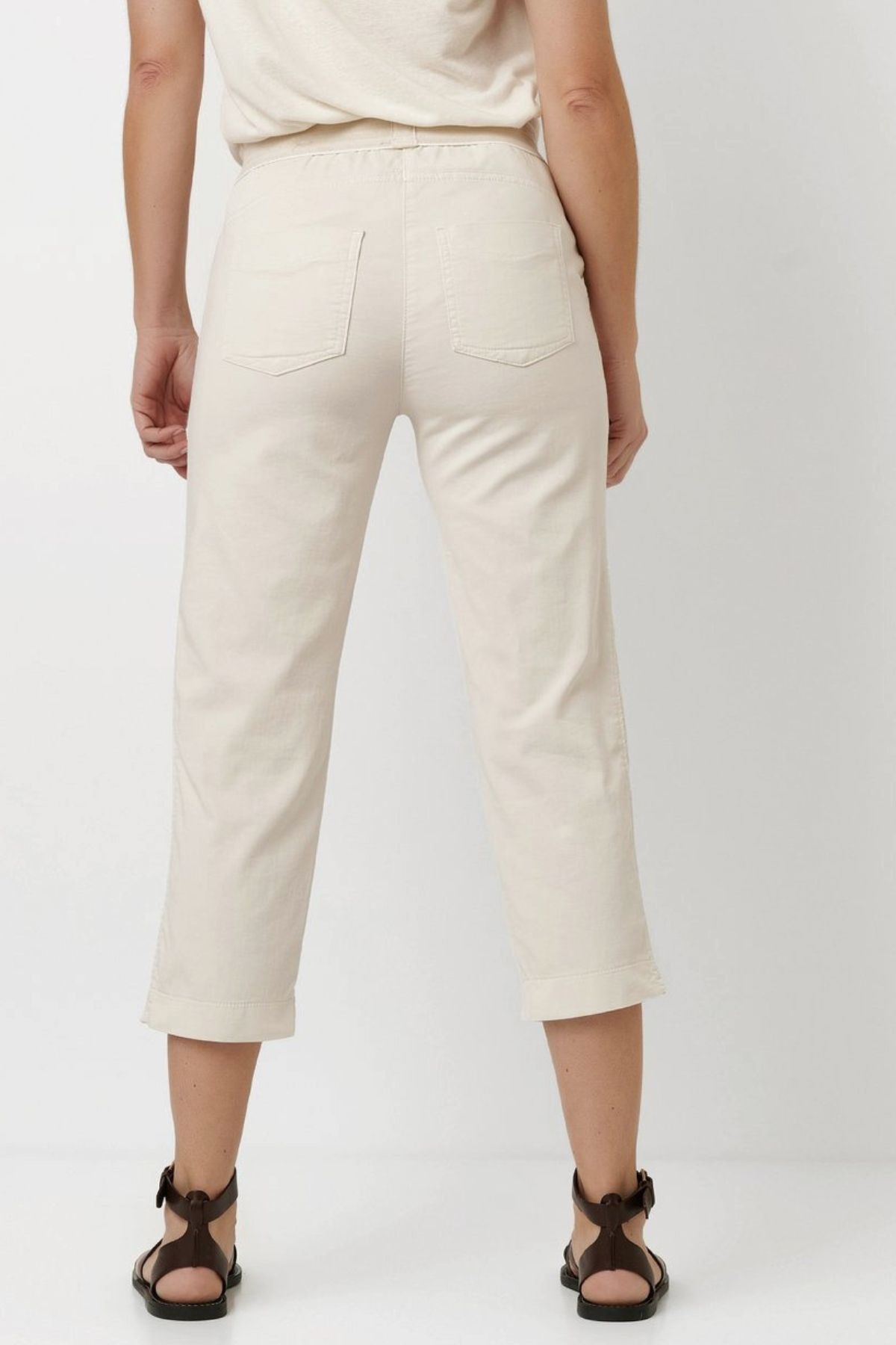 Den förkortade 3/4-längden gör byxan mycket mångsidig. Den är idealisk för somriga kombinationer där kravet på både stil och enkelhet står i fokus.