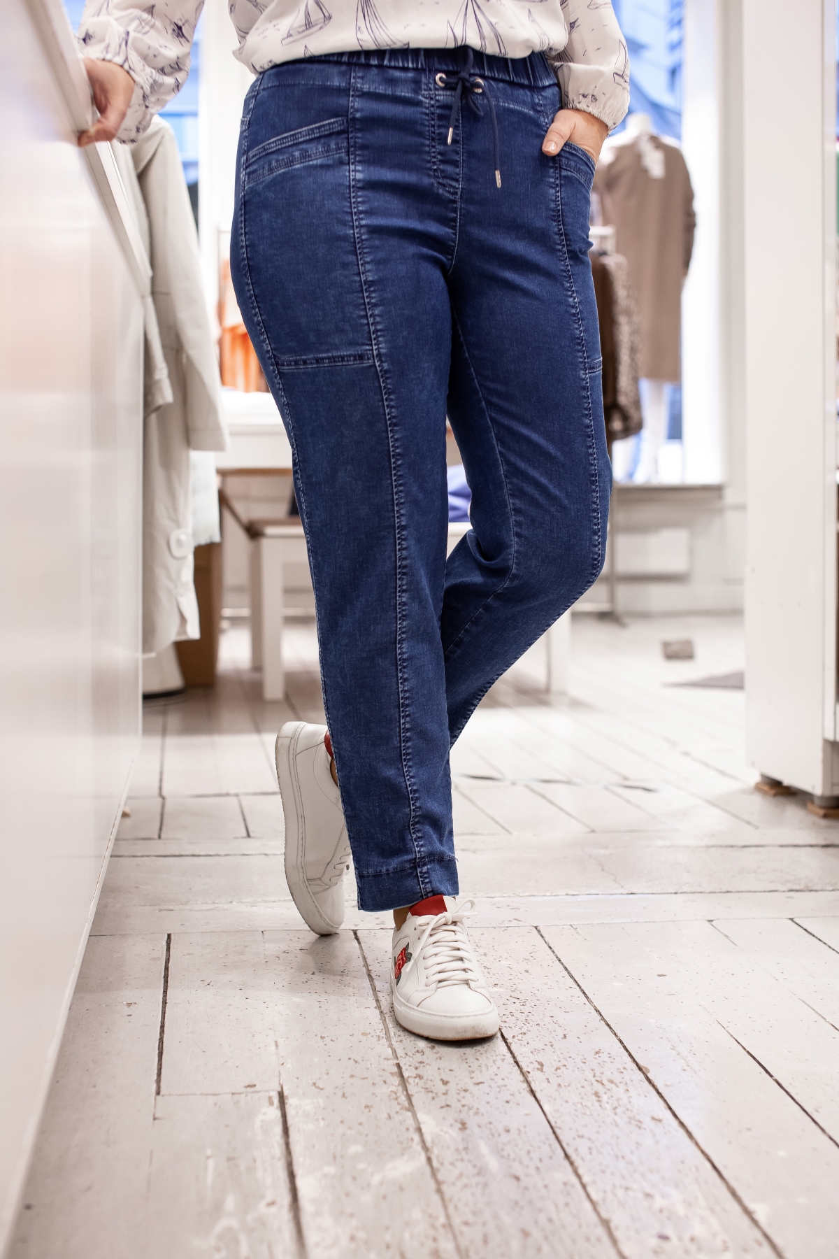 Med pull-up linningen gör att byxan följer svanken och bara känns som ett med kroppen.