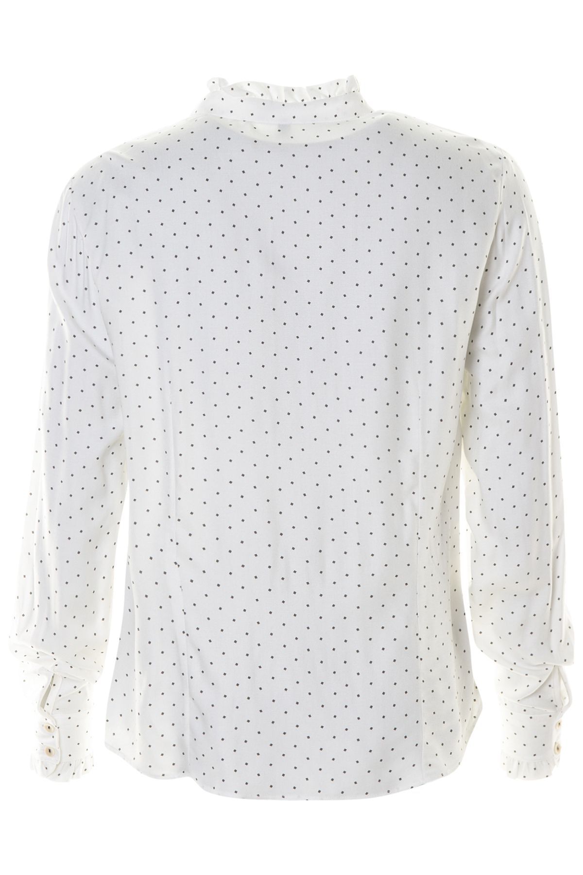 V-ringad blus med volanger från Tinta Style. Blusen är är aningen figursydd i modellen med insnitt vid bysten och normal i passformen.